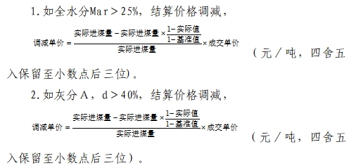 (4)如化驗單批次Qnet,ar<(基準(zhǔn)值-300),該批煤作廢,按0元結(jié)算。