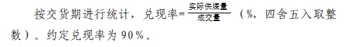 4.扣噸及罰沒噸數(shù)不參與兌現(xiàn)率計算,質(zhì)量指標(biāo)也不參與月度或供貨期加權(quán)平均計算.