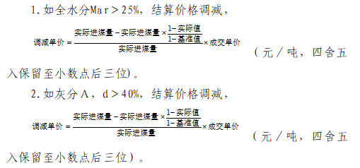 (4)如化驗單批次Qnet,ar<(基準值-300),該批煤作廢,按0元結算。