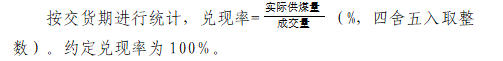 4.扣噸及罰沒噸數不參與兌現率計算,質量指標也不參與月度或供貨期加權平均計算.
